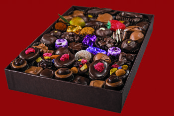 Sophisticated tastes in an assortment of fresh and beautifully shaped chocolates chosen to grace a table for any special event. This is adult fare. The taste range includes a few liquors, truffles, soft and sweet vanillas and fruit pieces plus a bit of caramel and nut.